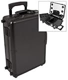 18 inch Black Aluminum Lighted Mirror Professional Rolling Wheeled Makeup Case Cosmetic Pull Along Organizer Studio Train Case