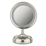 The conair BE93 5x magnification natural daylight mirror is the perfect personal mirror. it’s double-sided with 5x magnification that provides a detailed look great for applying makeup. The mirror is lit by an energy-saving lifetime fluorescent bulb that consumes 60% less energy than traditional bulbs and provides bright light. At 6.5 inches, the round head provides plenty of area to take a close look. it has a stylish satin nickel finish and on/off controls on the power cord for convenient use.
