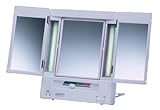 In Stock High magnification, versatile illumination and multi-angle viewing make this tri-fold mirror an oasis for your beauty and luxury needs. Especially designed for panoramic viewing, the Jerdon JGL9W Lighted Tri-fold Mirror features two adjustable side panels, plus a mid-section with 1x magnification and 5x magnification side-by-side. Two bars of fluorescent lighting offer cool, glare-free illumination and the color-correct light menu simulates the ambience of a restaurant or the lighting of an office. An internal outlet accommodates curling irons and roller sets, while an adjustable backstand offers 11 viewing angles. The entire unit folds up flat for storage and comes with a 1-year limited warranty that protects against any defects due to faulty material or workmanship. Jerdon Style has earned a reputation for excellence in the beauty industry with its broad range of quality cosmetic mirrors (including vanity, lighted and wall mount mirrors), hair dryers and other styling appliances. Since 1977, the Jerdon brand has been a leading provider to the finest hotels, resorts, cruise ships and spas worldwide. Jerdon continues to evolve with and shape how stylists envision beauty and fashion.High magnification, versatile illumination, and multi-angle viewing make this tri-fold mirror from Jerdon a virtual cockpit of makeup application. Structured for panoramic viewing, the mirror features two adjustable side panels, plus a center section with regular reflection on one side and 5X magnification on the other. Two bars of fluorescent lighting offer cool, glare-free illumination, and the color-correct light menu lights your face for day or evening, the office or home. A built-in outlet accommodates curling irons and roller sets, while an adjustable backstand offers 11 angles to work from. The entire unit folds up flat for storage. Though the mirror does not feel as substantial as the company's all-metal models, it does roll several features into one compact model. In addition, the reflection is consistently clear, and the side panels stay put where you place them. Fully extended, the mirror measures 19 by 12 inches. Jerdon includes a one-year warranty. --Emily Bedard - Adjustable tri-fold makeup mirror with cool, glare-free fluorescent lighting