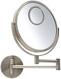 In Stock From far away it looks like a spotlight with a streamlined nautical style and a 15x magnification spot mirror. This product extends up-to 13.5-inches from its wall mount and is 8-inches in diameter. The nickel finish protects against dust and moisture and meshes a rustic charm with city living. This mirror has two reflective sides that swivel for a regular or a 10x magnification mirror. This product glides with the touch of a finger, but is firm enough to hold its place for odd angles. The nickel finish is especially designed to add an aesthetic charm to your lavatory or dressing room. This product comes complete with mounting hardware and is easy to install. Jerdon provides a 1-year, limited warranty that protects against any defects due to faulty material or workmanship. Jerdon Style has earned a reputation for excellence in the beauty industry with its broad range of quality cosmetic mirrors (including vanity, lighted and wall mount mirrors), hair dryers and other styling appliances. Since 1977, the Jerdon brand has been a leading provider to the finest hotels, resorts, cruise ships and spas worldwide. Jerdon continues to evolve with and shape how stylists envision beauty and fashion.- Nickel finish protects against dust and light moisture