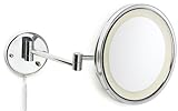 In Stock The lustrous chrome finish on this luxury mirror shimmers like a silver fin and provides 5x magnification for a dynamic point of view. This mirror is used in luxury hotels and day spas and is the epitome of excellence in beauty products. The outer edges illuminate your face with bright LED lighting. What makes this mirror unique is its LED bulbs that never require replacement and use 2.5-watts of power (brightness is comparable to a standard 40-watt bulb). The chrome finish protects against moisture and condensation. This product extends up-to 15-inches from its wall mount and is 9.5-inches in diameter. This product glides with the touch of a finger, but is firm enough to hold its place for odd angles. The chrome finish is especially designed to add an aesthetic charm to your lavatory or dressing room. This product comes with a double heavy-duty arm and installation hardware. Jerdon provides a 1-year, limited warranty that protects against any defects due to faulty material or workmanship. Jerdon Style has earned a reputation for excellence in the beauty industry with its broad range of quality cosmetic mirrors (including vanity, lighted and wall mount mirrors), hair dryers and other styling appliances. Since 1977, the Jerdon brand has been a leading provider to the finest hotels, resorts, cruise ships and spas worldwide. Jerdon continues to evolve with and shape how stylists envision beauty and fashion.- Chrome finish is sleek and professional