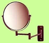 In Stock Beautiful Bronze Finish. Mirror on Both Sides. Elegantly crafted, 8" full 7X power magnification mirror on one side, true- view on the other. The fine mirror head is mounted on an adjustable swing-arm that will extend up to 13 inches. When the mirror is not in use it stores flush to the wall. Color: Oil Rubbed Bronze Diameter: 8 in Magnification Power: 7 X