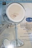In Stock Looking Glass Magnifying illuminated Mirror. The Vanity Magnifying Mirror is an easy to use, stylish mirror great for use in any bathroom and vanity area. This two-sided lighted mirror features a regular mirror for everyday applications and an 8x the magnification for closer viewing of hard to see areas. This stylish mirror comes in brushed nickel and has fog free optics and a non-distorting lens and comes with a 10X Magnification Travel Mirror and Bag. Great for use by everyone in the family, this mirror can be easily moved from one spot to another.- The Vanity Magnifying Mirror is an easy to use