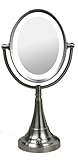 In Stock Zadro Oval, Dual Sided, Lighted Fluorescent Pedestal Vanity Make-upMirror VANCOS01 Features: Twin 9" X 7" Oval Optical Quality Glass Mirrors Regular 1 X & 8 X Magnification Mirrors with 360° Swivel 10,000 Hour Long Life Fluorescent Bulb AC Adapter in Base On/Off Switch In Base Satin Nickel Finish Item Dimensions: 19"H x 9½"W x 6"D- Twin 9" X 7" Oval Optical Quality Glass Mirrors